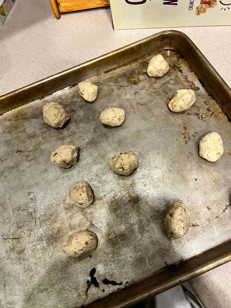 Cool in the fridge for about an hour, then roll them into little balls a bit smaller than a golf ball. You're supposed to then roll those in some more powdered sugar but I forgot to and they turned out fine, so... your call.